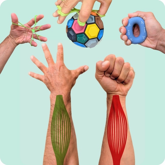 - Training extras for finger strength - rubber ring & rubber band for targeted bending and stretching