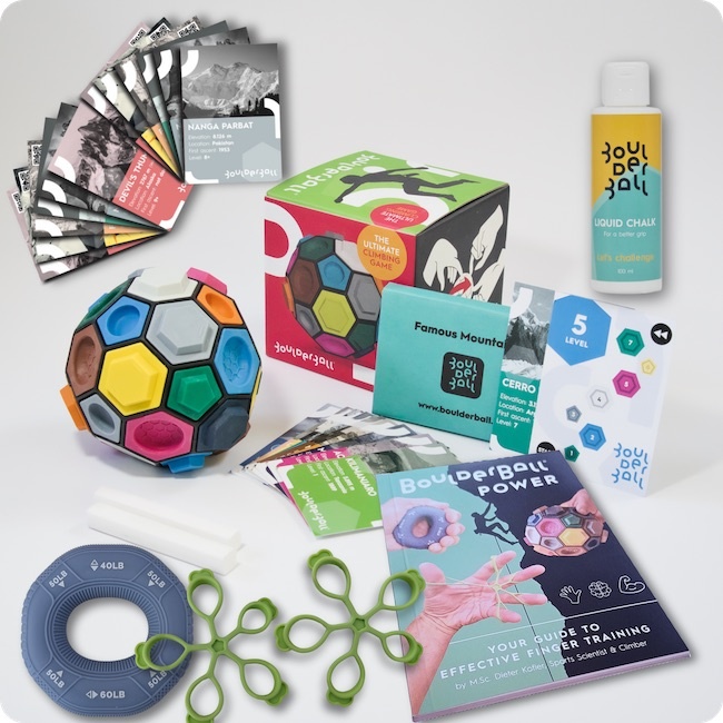 The Boulderball is the world's first portable bouldering game. The Power Bundle expands the Basic with an effective and well thought-out training package to strengthen your fingers, tendons and forearms. Lees meer