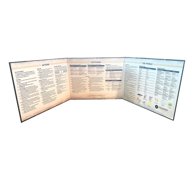 Crafted with both style and functionality in mind, this three-panel screen features stunning full-color artwork inspired by Brandon Sanderson’s Stormlight Archive, immersing players in the sweeping landscapes and epic battles of Roshar.