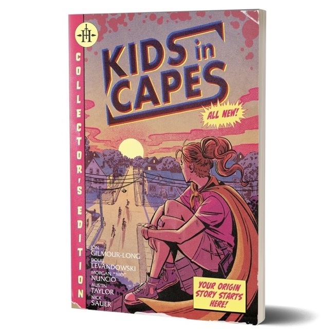 Kids in Capes is a brand-new spin-off roleplaying game of the ENnie award-winning Kids on Bikes! This new game updates the classic rules that Kids on Bikes fans love, while offering a chance for players to explore the world of superheroes along with their friends!