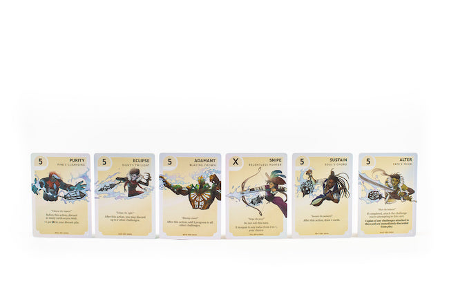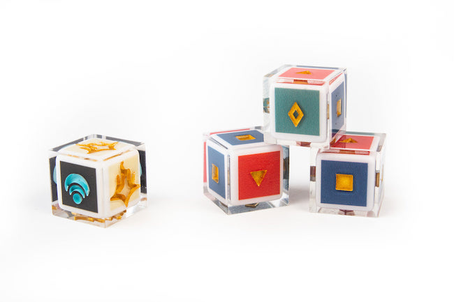 The upgrade kit includes six holographic Seeking Lantern cards to light your path, a custom metal 10-sided Countdown die, and four epoxy resin Delve dice.