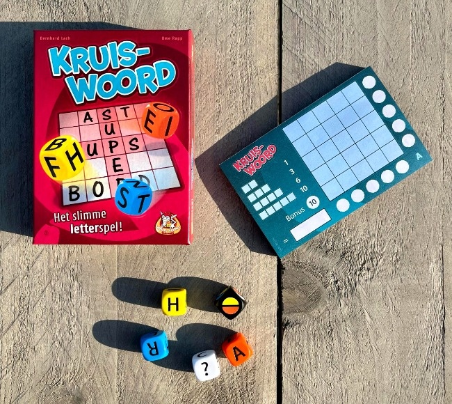 Kruiswoord is het ideale spel voor liefhebbers van woordpuzzels! In elke ronde noteert iedereen 1 letter in het 5x5 grid op zijn eigen scoreblad, nadat de 5 dobbelstenen zijn gegooid.