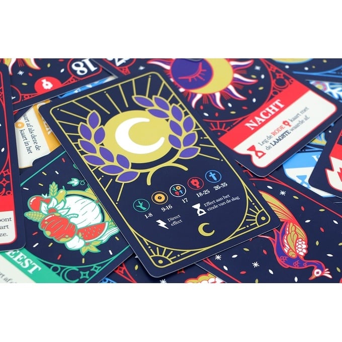 Oméa is een slim slagenspel waarin je met je team samenwerkt om kaarten kwijt te raken. Gespeelde kaarten beïnvloeden daarbij op magische wijze zowel jouw kaarten als die van je tegenstanders. Speel jij je kaarten op het juiste moment?