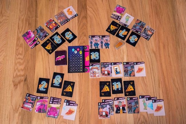 Each round, players will take turns flipping over booty cards to see what is available for auction in this lot. Once a lot contains enough desirable items (or when a policeman card is revealed), players bid on the displayed items using the available cheques.
