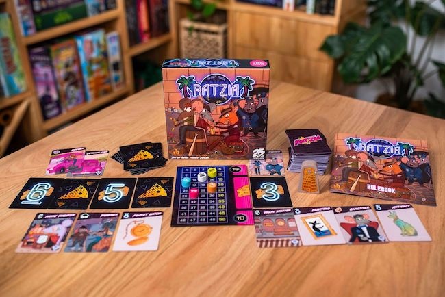 Ratzia is a card game re-implementation of Knizia's earlier board game Ra with the only notable changes being the re-theme and lack of catastrophes. This time players are mafiosi bidding for the booty stolen the previous night. Cars, jewels, and even whole nightclubs are for sale!