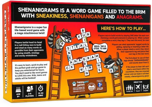 Shenanigrams is a super-sneaky word game that will have you and your loved ones squealing with laughter!