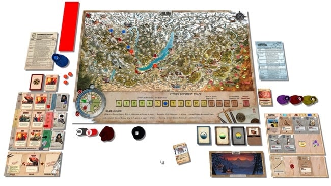 Siberian Manhunt is an asymmetrical hidden movement game for two players. One player takes the role of a U-2 spy plane pilot who has crashed behind enemy lines and must escape across the border into China. The fugitive must use their wits to navigate the dangerous landscape, survive encounters with predatory animals, and avoid starvation and hypothermia, all while being pursued by the KGB. Do they dare enter towns, risking detection by the local authorities, or will they strike out into the wilds and rely on their wilderness survival skills to stay alive?
