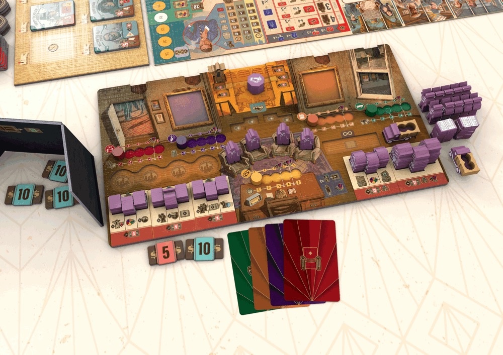 In this worker-placement and card-management game, you take on the role of one of those mobsters, managing and operating your very own speakeasy empire in Manhattan. To do so, you'll need to use all your cunning and resources to stay ahead of the competition. As you improve your operation, become more infamous, and upgrade to more lavish speakeasies and even casinos, you'll attract the attention of the outside mafia and the police. You need to use your leverage to keep your business running and receive your share from Lucky Luciano.