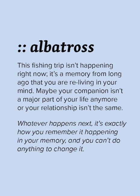 In Tacklebox, card prompts shift the nature of reality around you. Keeping each prompt to yourself, any time you draw a card you're tasked with roleplaying its change in circumstances to your fishing partner. Prompts can either be kept a secret for the full game, strategically played to guide roleplaying, or revealed when guessed to earn points. Simply choose your rules, grab your cards, and cast your line into the unknown!