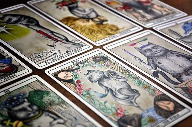 Capturing the sophisticated energy of the feline personality, this charming deck by Spanish painter Ana Juan brings its own sensibility along for the ride. These sketchbook-style illustrations capture the imagination with lively movement and amusing facial expressions. The careful use of color makes for cards that pop in all the right ways, the artistic equivalent to a purring cat on your lap.