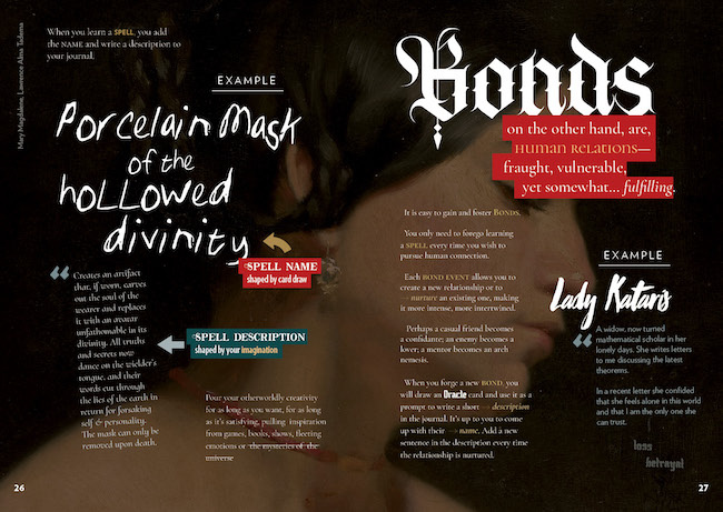 This edition is powered by the Oracle, a 78-card deck which holds the Spell and Bond prompts, plus unique, evocative artwork by momatoes that can inspire your writing. An online playable version of the Oracle is included in every purchase.