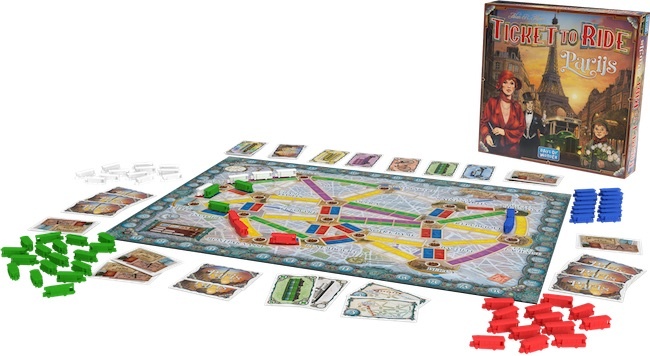 In dit snelle Ticket to Ride-spel racen spelers tegen elkaar om de meest iconische locaties van de prachtige Franse hoofdstad te bezoeken en hun bestemmingskaarten te voltooien.
