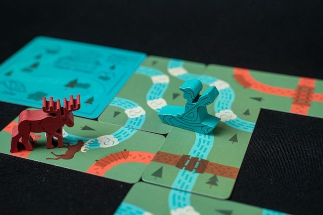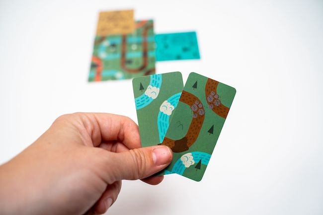 Trailblazers is a simultaneous drafting, route-building game where players construct their own network of hiking, biking, and kayaking trails. Trail cards can even be overlapped, giving you the freedom to blaze routes however you please.