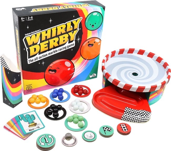 Word de Kampioen der Kampioenen in Whirly Derby! In dit spannende racespel probeer je met jouw team van vijf knikkers zoveel mogelijk punten te verzamelen.